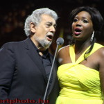 Budapesti kétrészes koncertjének műsorán népszerű operaáriák mellett operett- és musical részletek valamint a spanyol világsztár gyökereit jelentő zarzuelák is felcsendültek. Az augusztusi áriaestre ifjú művészek is meghívást kaptak: a Domingo által alapított Operalia énekverseny két felfedezettje, Angel Blue és Micaëla Oeste mellett a magyar szoprán, Pasztircsák Polina, valamint Váradi Gyula hegedűs, a Virtuózok című klasszikus zenei tehetségkutató egyik idei díjazottja is fellépett. Az esten a Magyar Állami Operaház Zenekara működött közre Eugene Kohn vezényletével.